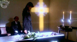 From there we follow the course of Yoshiki's body, from autopsy to embalming mortuary, and an unflinchingly graphic, artistically beautiful and clinically explicit scene of corpse restoration ensues, all set to a chilling accompaniment of dead air. (Viewers with dodgy tums are advised to look away.... now.) It's obvious that Miyako performs her work with love and respect, and that her greatest value is compassion for the family, trying to ease their grief by showing their deceased as the beautiful, whole and perfect person they were before death.
