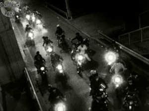 In the end, though, really this is a movie about young guys riding motorcycles, no more, no less. The latent cool factor is high, but palls after a while: Wild Zero, or even Easy Rider, this is not. Grainy, technically flawed and woefully low-budget, it's irritating in places, and could do with losing ten minutes or so to tighten up the pace a little. Certainly towards the end, the documentary starts to wander and you wonder if the last few scenes are just padding designed to bump the movie up to the required running time of ninety minutes. Nevertheless, as a reminder of classic teenage rebellion, of the sheer joy that can be gained from riding a motorbike round with two hundred other people next to you, of a now semi-extinct phenomenon, of just being young, Godspeed You! Black Emperor cannot be recommended highly enough.