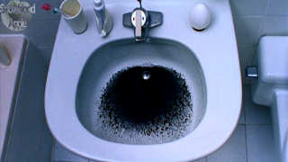 Weird usage of time delays and dreamlike, hallucinatory sequences add well to the strange, eerie ambience of the piece. Haunting, sparse use of incidental music works very well to emphasise the drifting atmospherics, and in much the same way that Shinya Tsukamoto used heavy rain in his work A Snake of June symbolically, as well as using it to add a feeling of claustrophobia and isolation, Bimil also features much symbolic water - not merely in the title, but also in the plot, the title screen, the logo and almost every scene of the movie, even as a visual element or a background sound, to great effect.