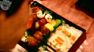 Not only that, but she tries to combine two of her obsessions, playing out some kind of wifely fantasy, cooking the most amazing, delicious-looking and decorative box-lunches for him, wrapping them up beautifully and bringing them to him in some kind of devotional way. (Is this a comment on how Japanese women in their sociological culture are not merely still treated by men but also observe themselves, still in their old-fashioned roles as wife/whore? Or is it merely a kind of protective bribe, to guard against her own vulnerability, heightened by her mute status, and insecurity?)