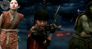 Given that child actors can be enormously tiresome and wince-inducing much of the time, Ryonosuke Kamiki's Tadashi remains fresh and innocent enough not to annoy an adult audience. Clearly though he's not there for the grown-ups, but nevertheless his comic incapability when presented with the Goblin Sword – and the fact that it leads him, rather than the other way around – somehow seems refreshing rather than clichéd. Chiaki Kuriyama, as noted above, vamps it up massively and looks like she's having a great time playing much the same sort of masochistic role she took in Kill Bill. It's to her credit that her substantial amount of screen time, much of it spent pouting, doesn't seem like overkill. But really all of the characters in the movie are cartoons, barely rounded, and the performances certainly reflect that.