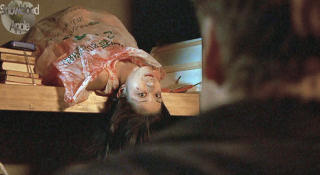 In yet another time frame (the third so far, but at least in this Shimizu is sticking with the structure we've seen in his earlier pictures) we see an American family look at and move into a Japanese home. Husband Matthew, wife Jen, Matthew's mother Emma and his sister Susan, who herself lives separately but still in Tokyo ). Initially, all's well and they feel comfortable there, although Emma feels uneasy about the upstairs area. Matthew goes to work, leaving Jen to look after Emma, who's mentally quite unstable. After work one day, after Jen has had a run-in with Toshio abd his cat, Matthew finds his wife semi-conscious in bed, and soon sees for himself why.