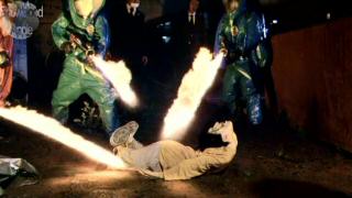 The family, always a treasure in a film like this, is instead like a more well-adjusted version of nuclear disintegration as presented in Visitor Q, and off the bat the troubles mount up in typical Q fashion. But Miike avoids the obvious; even an affair between Ichikawa and Asano's mother, which even had this reviewer crossing his fingers for, was avoided to keep the film on track. The troubles of this family are shown, but subtly - the wife walking with her new companion, the girl laying (fully clothed) in bed with her wealthy suitor, and the son's scars from his bullies. The acting is wonderful in Zebraman, so I'm going to repeat it for those who might think otherwise - the acting is wonderful in Zebraman. The cast of characters are given just the right amount of screen time per their level of dramatic or comedic skills, meaning no mediocrity overkill. And Sho Aikawa? Possibly Miike's greatest asset at this point. Having been in other films by the director (including the Dead or Alive trilogy and Gozu), to see this sort of versatility will always be sort of surprising to me as a Westerner - he's an actor who can do more than one type of role, and do it well. No doubt, he's good at a lot of things, but Aikawa is great in Zebraman. In fact, most of the actors were. And even some of the green goo things being played off as aliens.